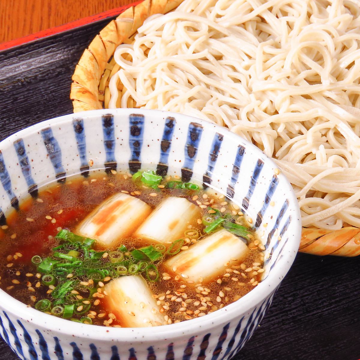 まずはシンプルに手打ちの蕎麦だけで味わい、蕎麦自体の香りと歯ごたえをお愉しみ下さい。次に、冷たいお蕎麦を熱々の鴨汁に着けてお召し上がり頂くと、鴨の風味がお蕎麦によく絡み絶品の味わいとなります。藪木に来たらぜひ味わって頂きたい逸品です。